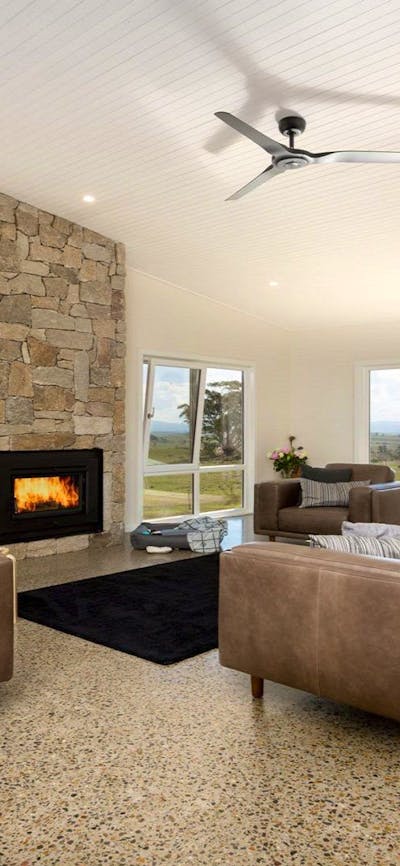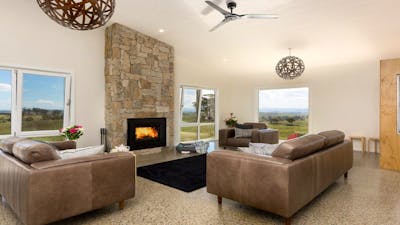 The polished concrete floor provides a stunning expansive open-plan living area base.
